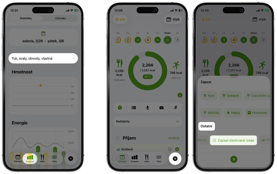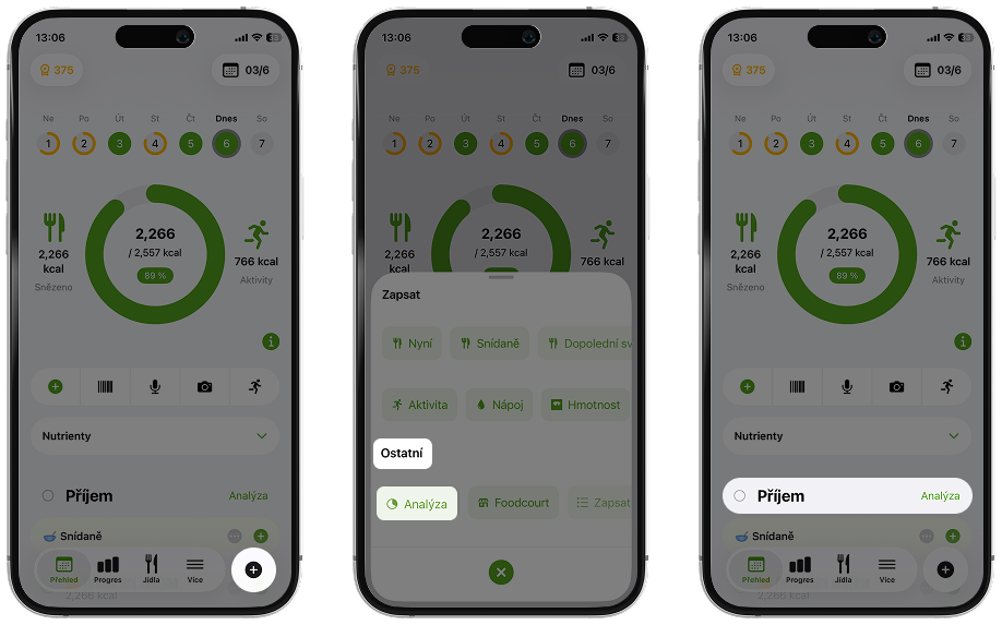 - Nebo klikni na „Analýza“ v řádku „Příjem“ těsně nad jídelníčkem.